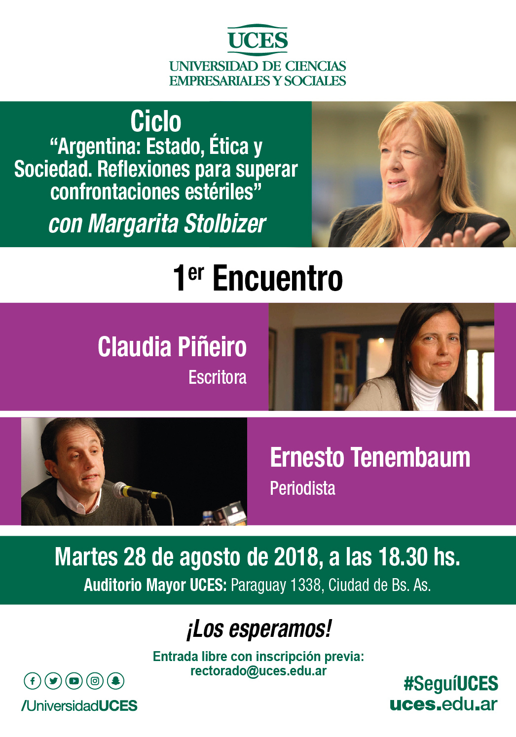 La actividad estuvo dirigida a la comunidad en su conjunto, de carácter libre y gratuito, a cargo de los siguientes disertantes: