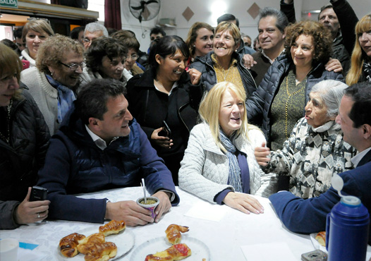 La candidata a Senadora Margarita Stolbizer junto a Sergio Massa primer candidato a Senador de 1País estuvieron esta mañana en un centro de jubilados de Llavallol.